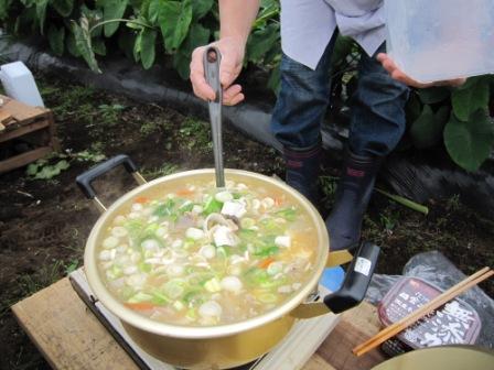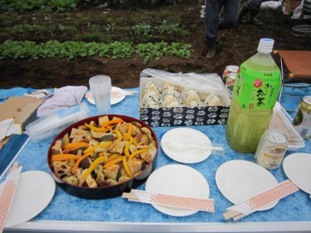 高橋施設長の美味しいお手製の豚汁、おむすび、秋色の野菜の素揚げ等、
