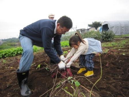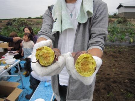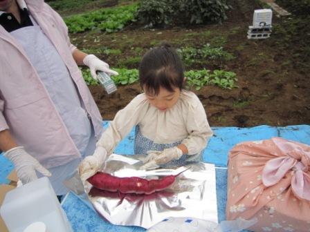 サツマイモにびっくり。理事長の娘さんもおおはしゃぎ